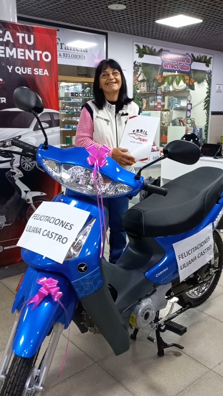 ” Estoy contenta por tener la moto, me la entregaron en tiempo y forma. Así como yo, ustedes también pueden confiar en Fasil Car.”
